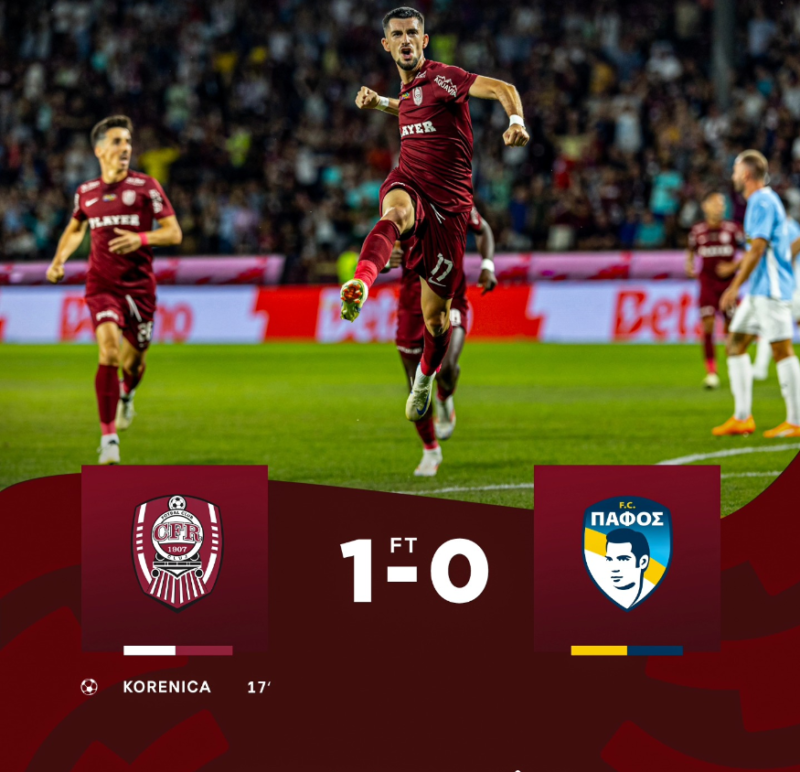 CFR Cluj se pregătește pentru meciul de revanșă cu echipa cipriotă Paphos în play-off-ul UEFA Conference League, o etapă crucială înainte de grupe. În partida tur, desfășurată pe 22 august pe Stadionul "Dr. Constantin Rădulecu" din Cluj-Napoca, clujenii, antrenați de Dan Petrescu, au reușit să obțină o victorie importantă cu 1-0.